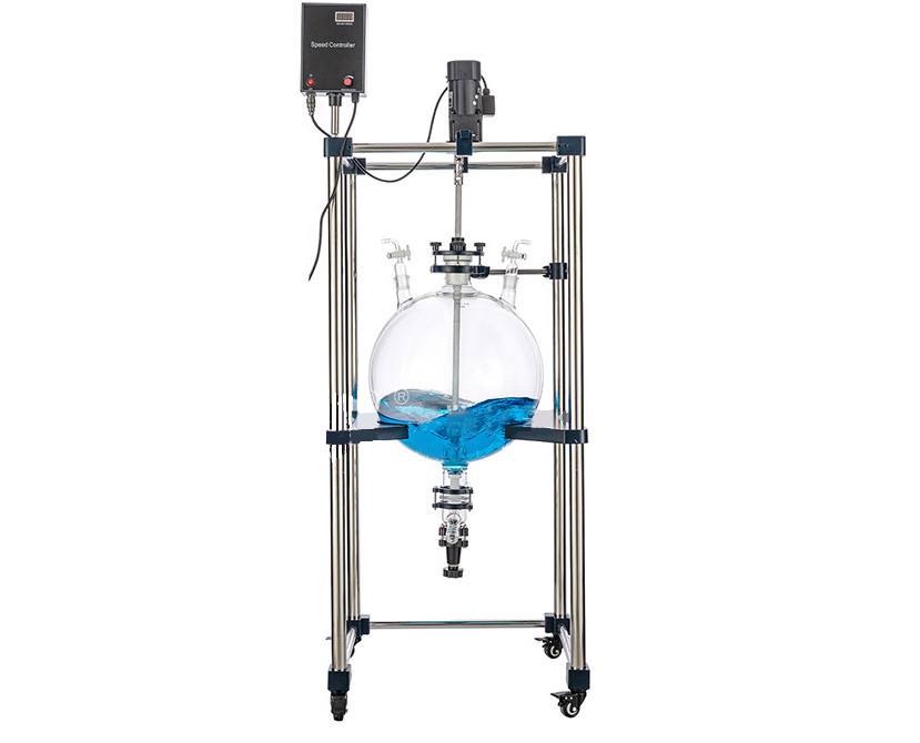 本機的電動恒速攪拌系統,對釜內原材料進行均勻攪拌,使物料在釜內充分反應,反應完畢后,關閉攪拌系統,待物料澄清分層后,通過玻璃放料閥進行逐層放液。