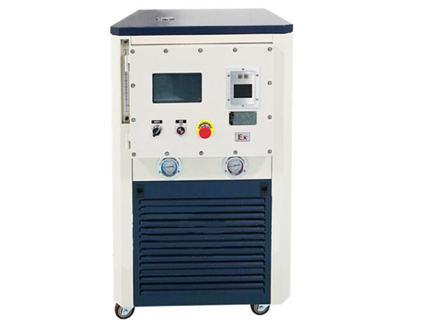 目前,本裝置采用機械制冷的方式,用壓縮機來制冷,用加熱管加熱來獲取高溫,加熱和制冷之間可以迅速切換,升溫和降溫的速率非常快,并且高溫時沒有油霧的產生,低溫時沒有水汽的吸收,整個系統是密閉的,還做了防爆裝置,安全問題不用多慮。高低溫循環裝置加熱和制冷,實現了兩機合一,大大節省了空間,也提高了實現效率。