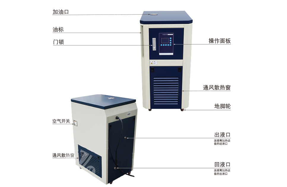 密閉型高溫循環油浴槽主要采用直接熱傳導的加熱方式進行工作的,由于加熱元件直接置于板槽中,流經的冷水/油便能直接流經加熱元件表面而被加熱, 又因板槽體積小,槽內的水/油可快速被加熱,所以循環出去的水/油具有較高的溫度。