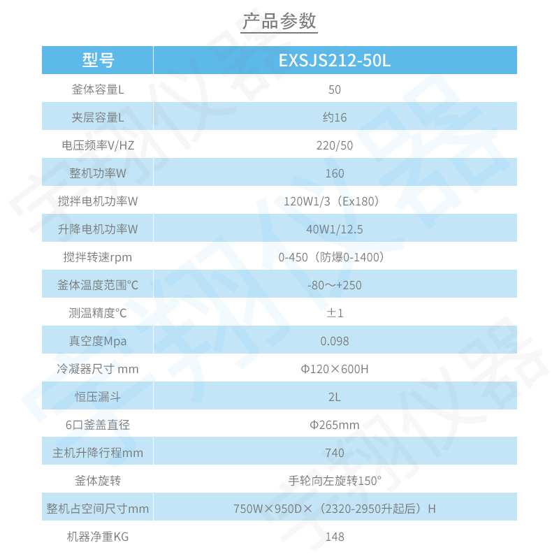 > 防爆升降旋轉(zhuǎn)玻璃反應(yīng)釜 EXSJS212-50L